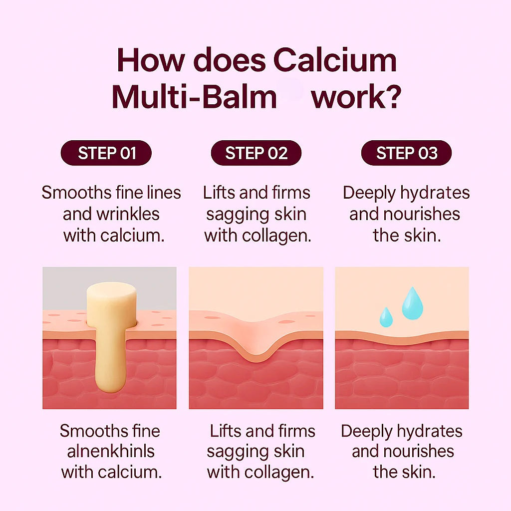 MeetCalcium Multi-Balm— your all-in-one wrinkle-fighting, skin-reviving treatment. Infused with calcium and collagen extract, this powerhouse stick smooths fine lines, hydrates dry spots, and restores firmness with just a few swipes. Perfect for on-the-go touch-ups or part of your daily routine.